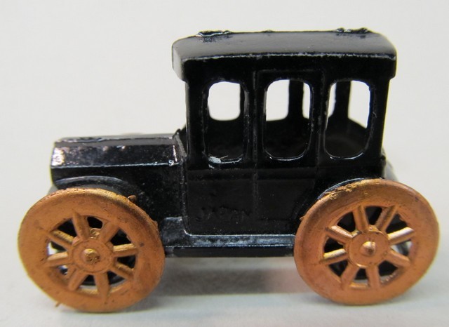 1908 FORD TYPE T. black with brass painted metal wheels. very similar to AHI but not sure if it was made by them. marked Japan. approx. HO scale. near mint to mint. 21.00