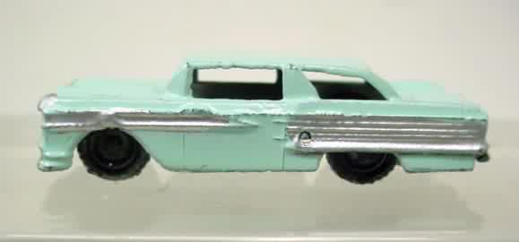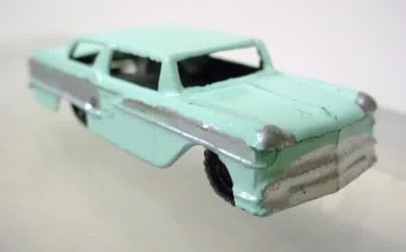1950's AMERICAN CAR. 2 door hardtop. light green with silver trim. unpainted base is marked "Japan". solid disc wheels. excellent. 23.50