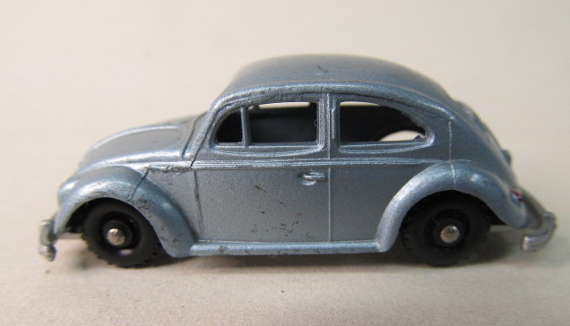 #8. VOLKSWAGEN SEDAN oval window. light silvery blue with black tires. silver base. very similar to the Matchbox. light play wear. casting is perfect. very good plus. 35.00