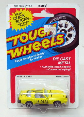 15200-2. CAMARO Z28. 1:60 scale. yellow with black tampo. gray interior. T roof. mint and factory sealed on "Quick Slicks" card. 16.50