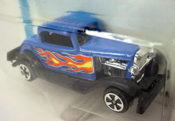 118-2. 1932 FORD ROADSTER. "Hot Rods of the 30's Series". blue with black interior. Flames on sides. Minor surface marring on card from price tag removal. approximately 1:87 scale. older item. 1980 issue. never played with. Mint on factory sealed blister card. 16.50