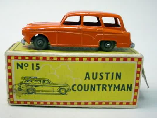 #15 AUSTIN A95 WESTMINSTER COUNTRYMAN Station Wagon. Orange with black plastic wheels. grey metal base. one pin prick above left front door. overall C-9 near mint. 29.50