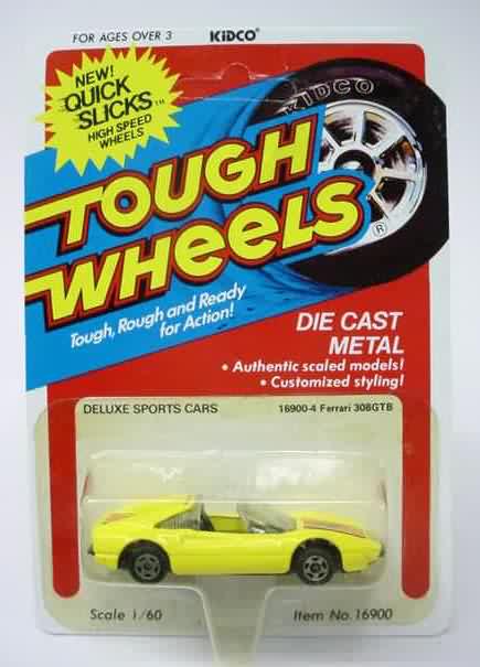 16900-4. FERRARI 308 GTB. yellow with black interior. black and orange tampo. Please note that the package blister has yellowed a very tiny bit. approximately 1:87 scale. older item. 1981 issue. never played with. Mint on factory sealed blister card. 18.00