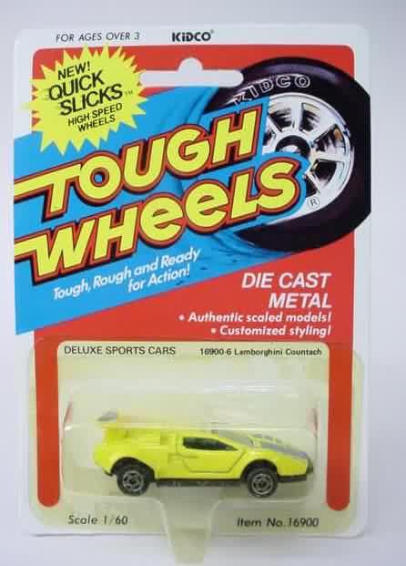 16900-6. LAMBORGHINI COUNTACH. "Deluxe Sports Cars Series". yellow with black interior. blue stripes. there is some very light yellowing to package blister. approximately 1:87 scale. older item. 1981 issue. never played with. Mint on factory sealed blister card. 15.00