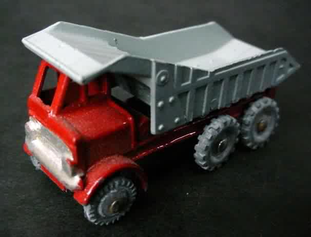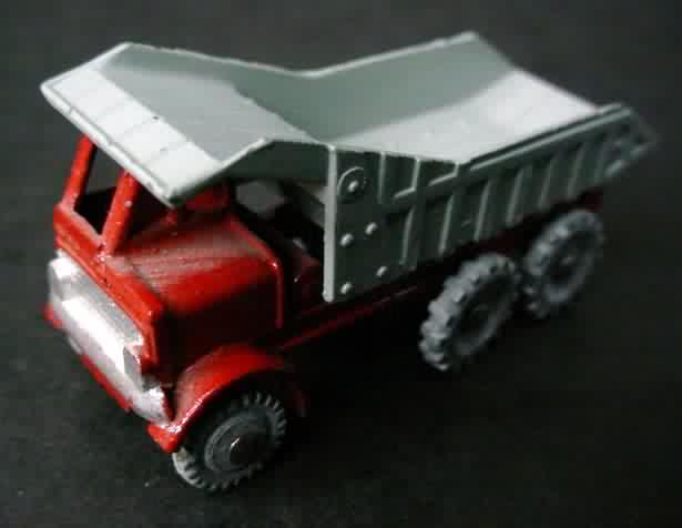 #18. FODEN DUMPER LORRY. red cab and chassis; grey dump; silver grille; metal wheels. couple very negligible flea bites on ridge of tipper. near mint or nicer. 35.00