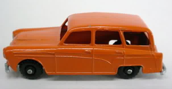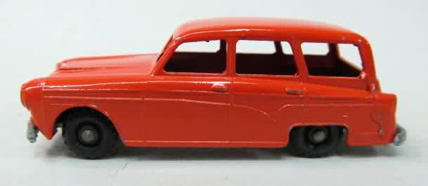 #15 AUSTIN A95 WESTMINSTER COUNTRYMAN Station Wagon. Orange with black plastic wheels. grey metal base. minor wear to high ridges. excellent plus or nicer. 25.00