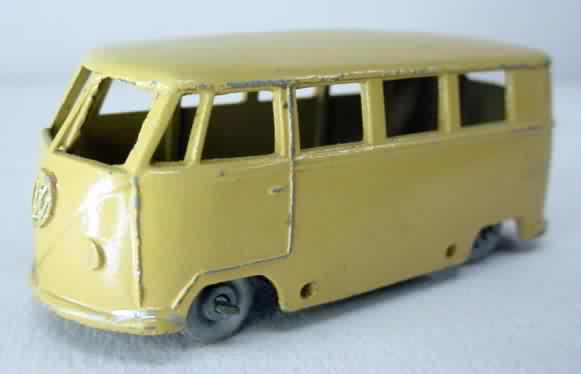 #12 VOLKSWAGEN MICRO BUS. 1957 issue. light brown with black base plate. gray metal wheels. I believe this was issued ONLY in the Gift Set. light play wear. very good plus to excellent or nicer. no box. 49.50