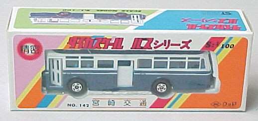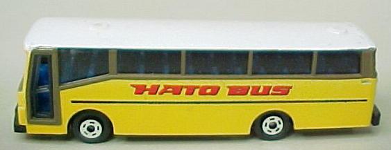 HATO BUS. Golden yellow; windows trimmed in brown; white roof; red HATO BUS on sides. Blue interior. Opening door. 1:100 scale. mint but NO box. 25.00