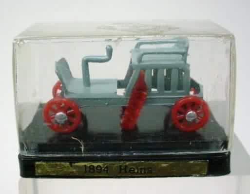 1892 DURYEA. green with red wheels. very similar to AHI but not sure if it was made by them. hard plastic display box base says T.M. Japan. approx. HO scale. paint is flaking off. no play wear. sorry sold