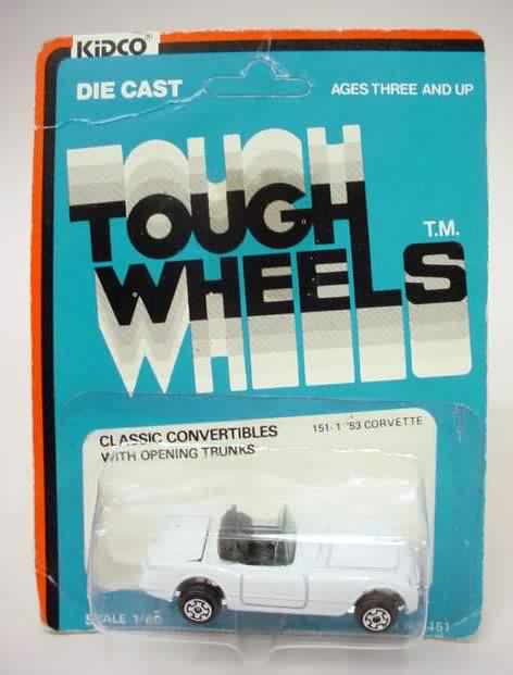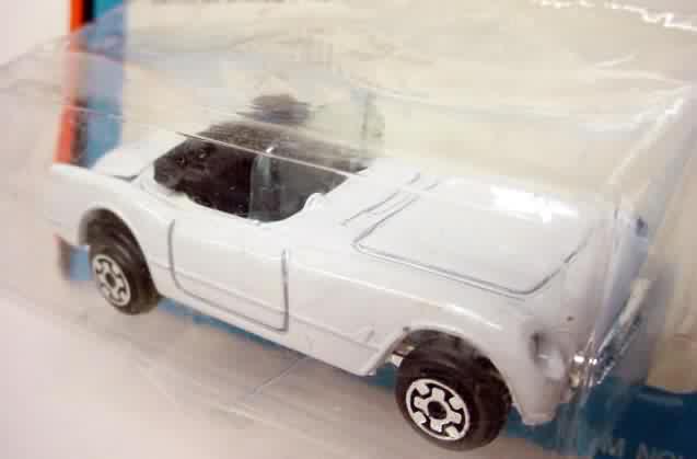 151-1. 1953 CHEVROLET CORVETTE CONVERTIBLE. white with black interior. card creased in upper left. approximately 1:87 scale. older item. 1979 issue. never played with. Mint on factory sealed blister card. 17.50