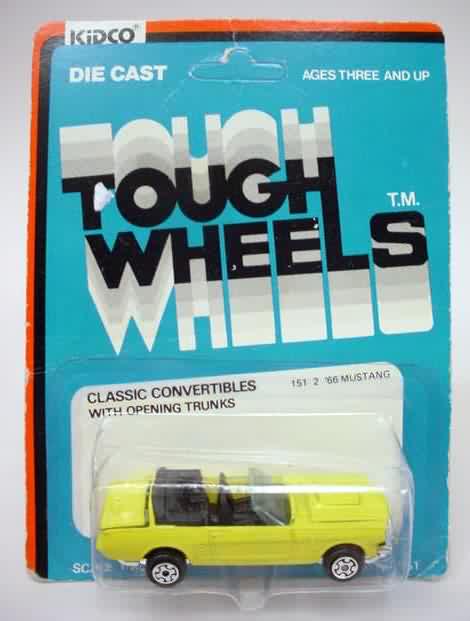151-2. 1966 FORD MUSTANG CONVERTIBLE. yellow with black interior. approximately 1:87 scale. older item. 1979 issue. never played with. Mint on factory sealed card. 16.50