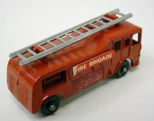 624. FIRE TRUCK. dark red with silver ladder. red and white FIRE BRIGADE labels. no play wear. near mint. 21.00
