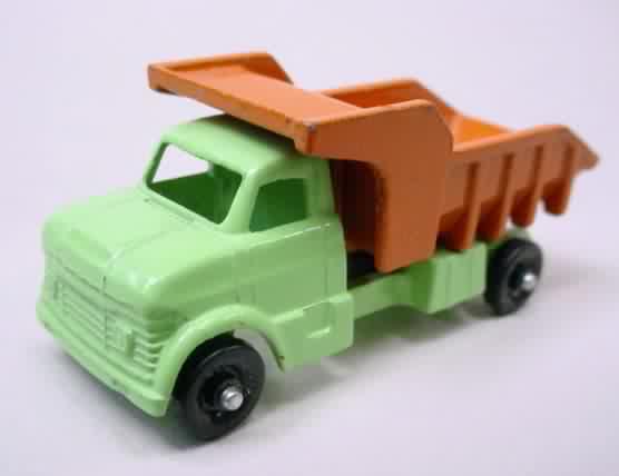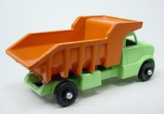 607. DUMP TRUCK. light green body with orange dump. no play wear. near mint. 21.50