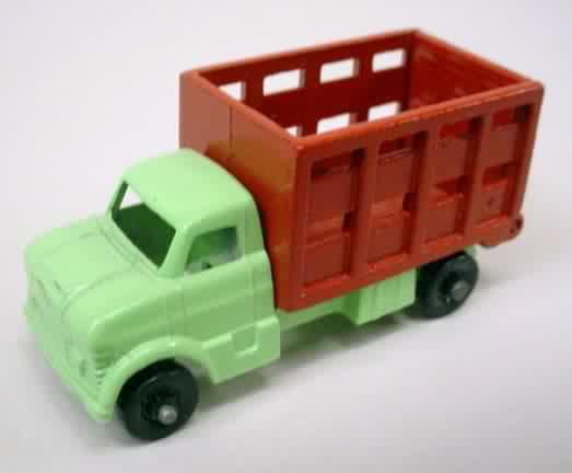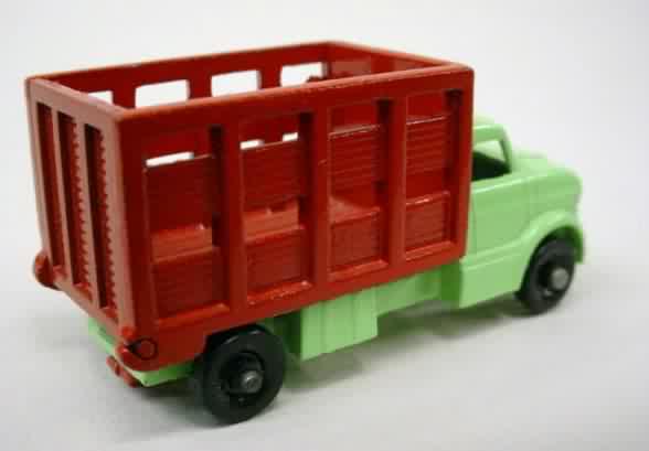 617. HORSE BOX TRUCK. lime green cab with red stake racks. opening rear gate. no play wear. near mint. 22.00