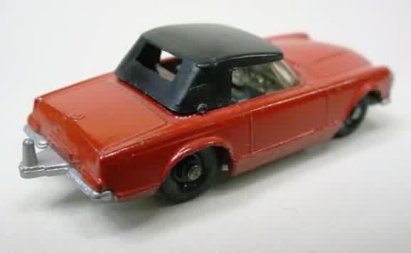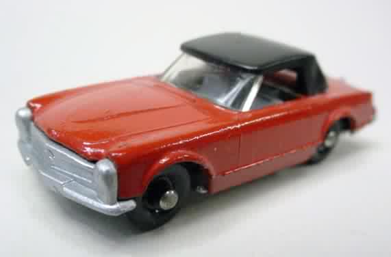 622. MERCEDES 280 SL SPORTS COUPE. red with black roof. silvery gray interior. tow hook on rear. no play wear. excellent plus to near mint. 18.00