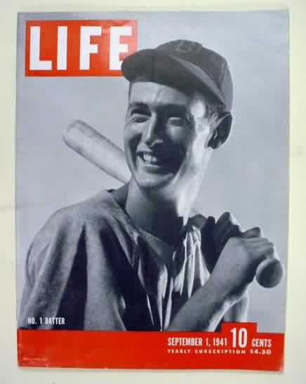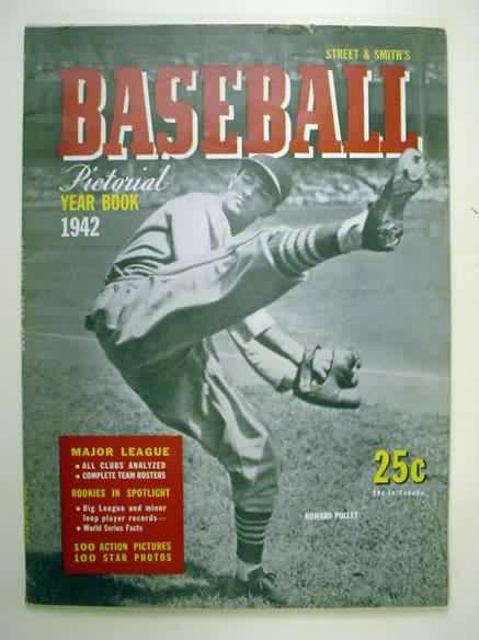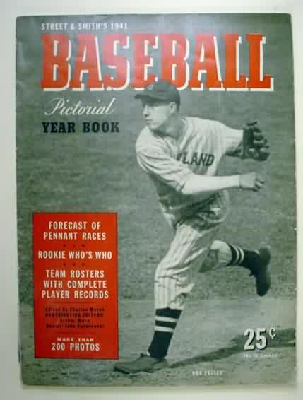 1941 Street & Smith Yearbook. Cleveland Indians BOB FELLER on cover. First of the Street and Smith annuals. tight and clean. small piece off bottom of spine and 3" separation of cover at spine base. excellent or better. 175.00