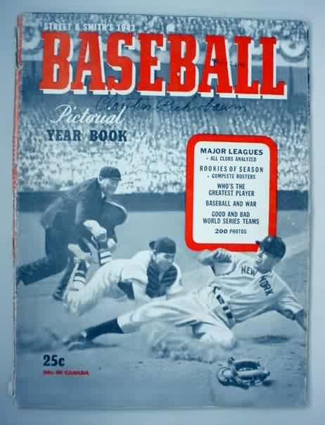 1943 Street & Smith Yearbook. New Yorks GEORGE KELLER on cover. interior is clean. spine wear and back cover is a bit loose. name inked on front cover. very good. scarce. 46.50
