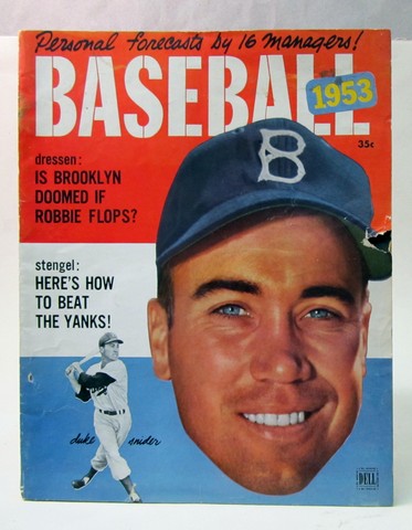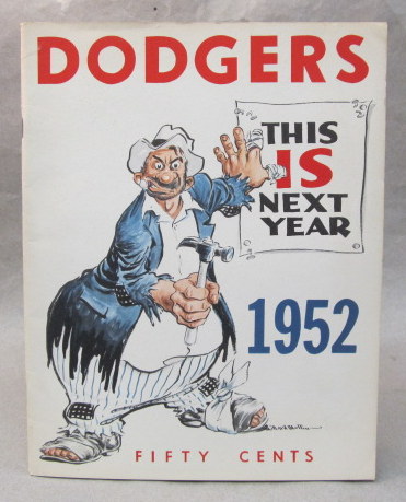 Yearbook. 1952 BROOKLYN DODGERS. Willard Mullin cover art. original vintage issue. 48 pages of photos and information. tight and clean. near mint. 150.00
