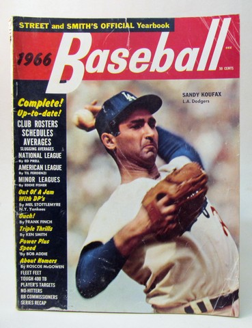 1966 Street & Smith Yearbook. Dodgers SANDY KOUFAX on cover. tight and clean. tear on top edge. light corner creases. very good. sorry sold