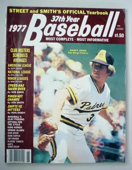 1977 Street & Smith Yearbook. Padres RANDY JONES on cover. tight and clean. excellent plus. 20.00