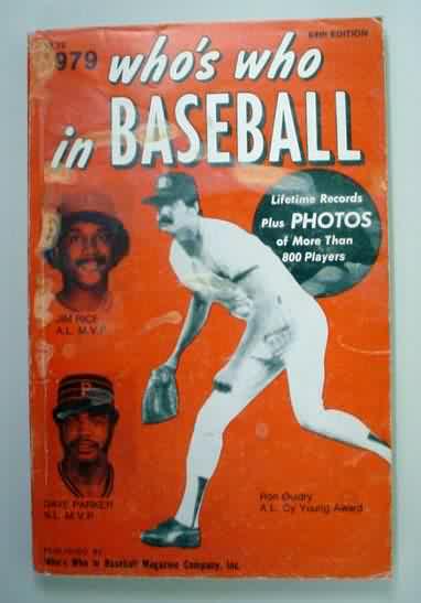 soft cover. 1979 WHO'S WHO IN BASEBALL. cover photos of Ron Guidry; Dave Parker and Jim Rice. 160 pages. Lifetime records of more than 800 players plus photos. tight and clean. cover has staining. very good plus. great reference book. sorry sold