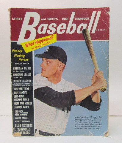 1962 Street & Smith Baseball Yearbook. ROGER MARIS on cover. tight and clean. tape repair on cover. cover shows wear. 16.50