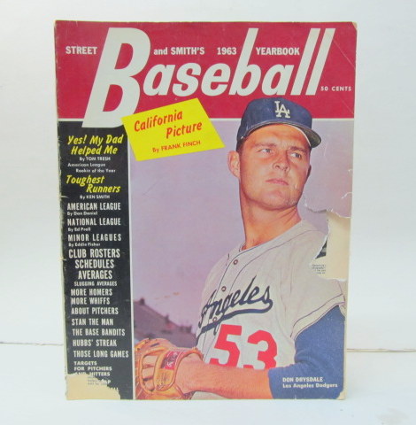 1963 Street & Smith Yearbook. Dodgers DON DRYSDALE on cover. tight and clean. cover damaged. 12.50