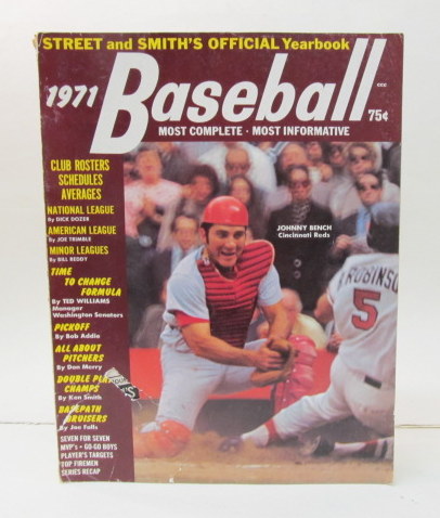 1971 Street & Smith Yearbook. Reds JOHNNY BENCH on cover. tight and clean. cover torn. 12.50