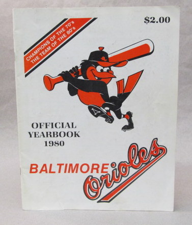 Yearbook. 1980 BALTIMORE ORIOLES. 56 pages plus the covers. has some related newspaper photos and clipping pasted in (does not affect it). very good. 17.50