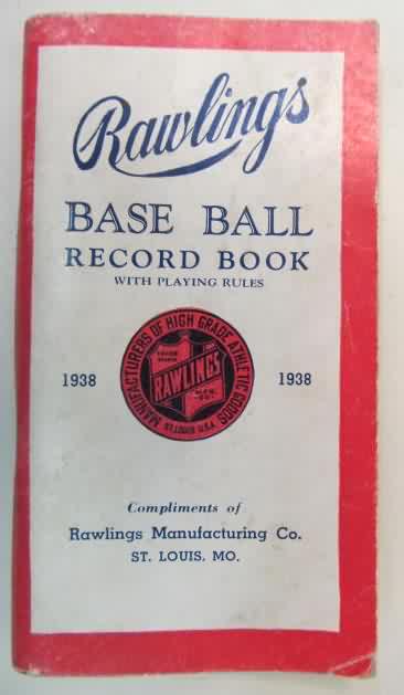 1938 RAWLINGS BASE BALL RECORD BOOK. 176 pages. tight and clean. very good plus or nicer. 20.00
