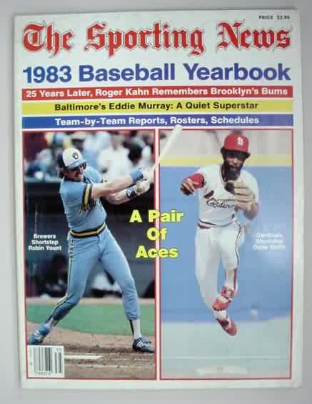 Official Media Guide AMERICAN LEAGUE 1983 RED BOOK with cover photo of Milwaukee Brewer ROBIN YOUNT. "Official statistics, records and awards since 1901. Complete Team Rosters; full player statistics." Published Feb. 15, 1983. 98 pages; approx. 8.5" by 11". EXCELLENT reference source! used - not abused. excellent. 9.50