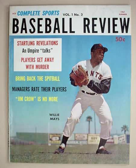 1967 BASEBALL'S ONE FOR THE BOOK. Official All-Time Baseball Records. The Sporting News. Black and white cover of Willie Mays in San Francisco stadium, acknowledging 5 minute Standing Ovation when he hit Home Run #512 to break the National League record held by Mel Ott. excellent. 20.00