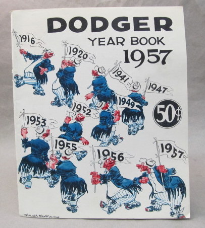 Yearbook. 1957 BROOKLYN DODGERS. Willard Mullin cover art. original vintage issue. 48 pages of photos and information. tight and clean. near mint. 145.00