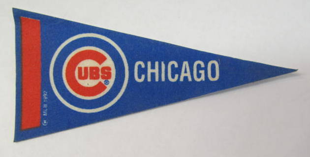 pennant. CHICAGO CUBS. approx. 4.5" long miniature. dated 1992. colorful logo on front. reverse side is white. near mint to mint. 6.00