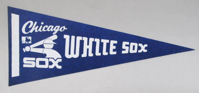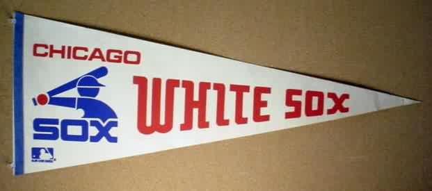 pennant. CHICAGO WHITE SOX. red/blue on white stiffer felt. blue border. tip intact. 29.5" long. 1970's vintage. pinholes. excellent. sorry sold