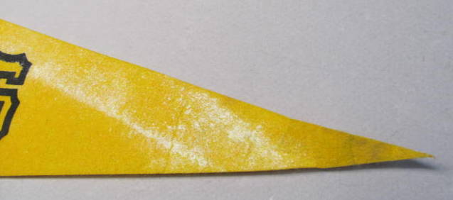 pennant. PITTSBURGH PIRATES. black on light orange. black border. tip intact. circa 1976. plain logo in lower left. approx. 30" long. please note that it has white stain (most likely paint) near tip. still displays nicely. 14.00