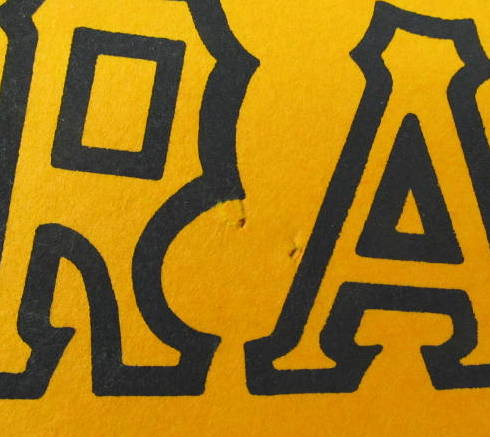 pennant. PITTSBURGH PIRATES. black on dark orange. has the plain logo in lower left with no lettering. black border. tip intact. creases and wear. pinholes in corners. approx. 30" long. good. 12.00