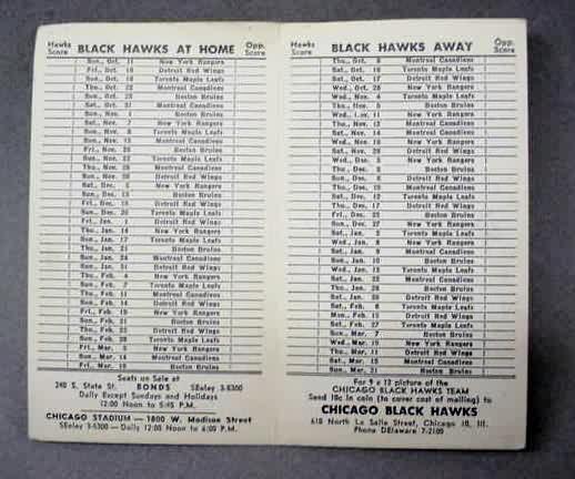 sked. 1953-54 CHICAGO BLACK HAWKS; logo on front; bifold; Nestor Johnson Skates; excellent to near mint. sorry sold