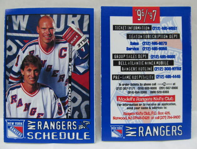sked. 1996-97 NEW YORK RANGERS. team issue. near mint to mint. 2.50