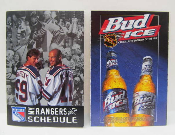 sked. 1996-97 NEW YORK RANGERS. Bud Ice. near mint to mint. 2.50