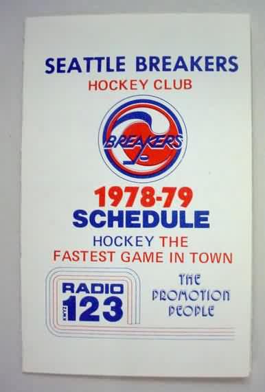 sked. 1978-79 SEATTLE BREAKERS. tri-fold. Radio 123 Sports Updates with Bill O'Mara. near mint to mint. 20.00