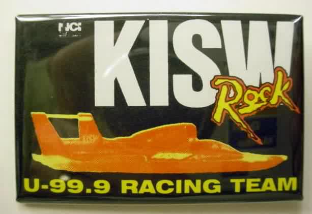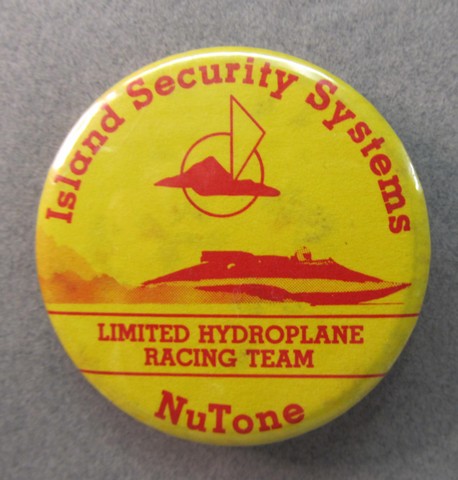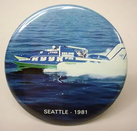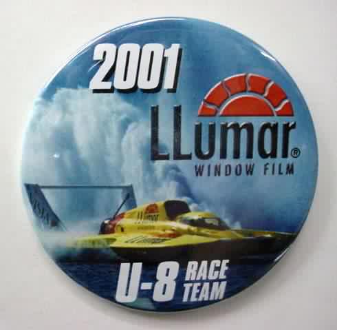 2001 LLUMAR SEATTLE U-8 RACE TEAM large size hydroplane pinback button. full color action photo of the boat. 3" diameter celluloid. reverse is clean; no rust. no flaws. colors strong and bright. Superior condition. sorry sold