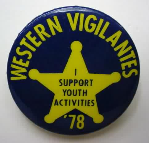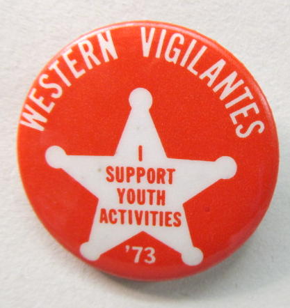 1973 WESTERN VIGILANTES. Seafair hydroplane related. white on orange. 1.75" diameter celluloid pinback button. mint. 6.00