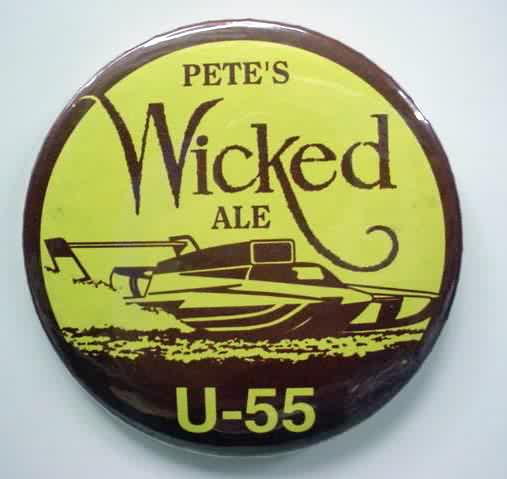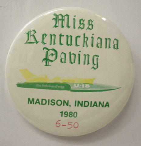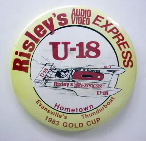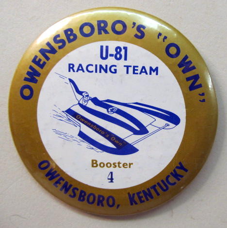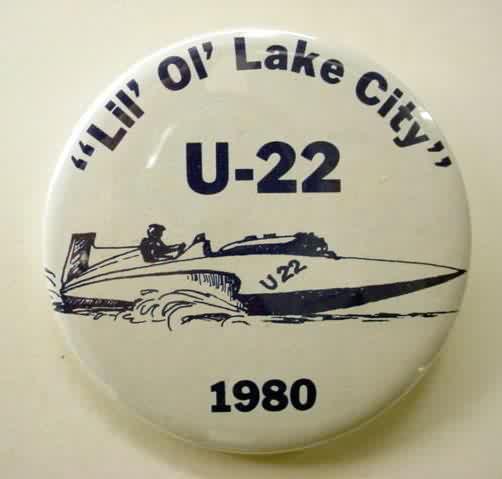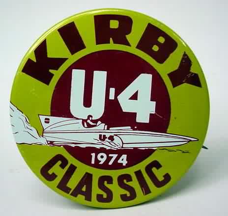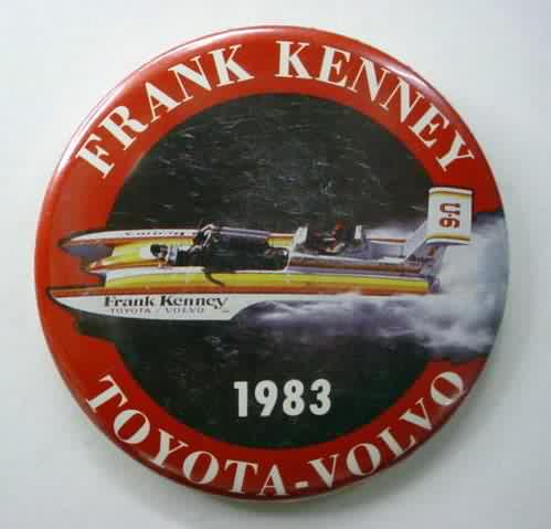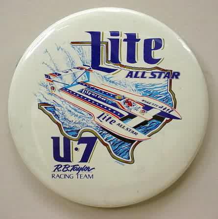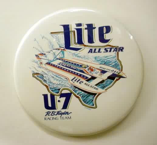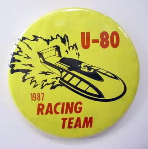 1994 KRUGER'S AMERICAN DREAM U-100 Louisville Texas hydroplane pinback. black on chrome. 2.25" diameter celluloid. Reverse is clean; no rust. no flaws. minimal surface wear. near mint. 10.00