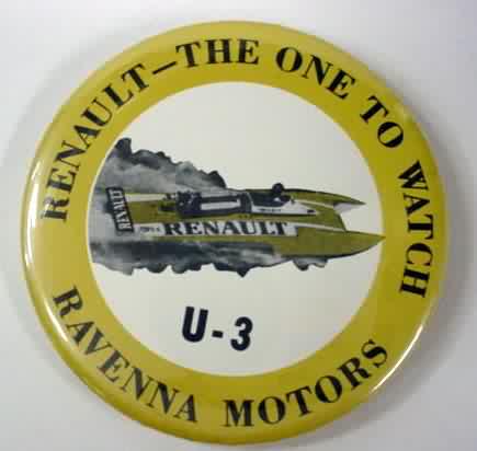 1994 OBERTO U-24 hydroplane pinback button. 3" diameter celluloid. Reverse is clean; no rust. colors bright and vivid. no flaws. superior condition. sorry sold