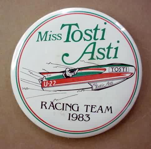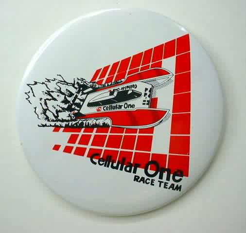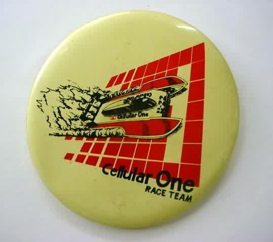 1998 APPIAN JERONIMO RACE TEAM hydroplane pinback. Full color photo of the boat. 3" diameter celluloid. reverse is clean; no rust. colors are strong and vivid. No flaws. Superior condition. sorry sold