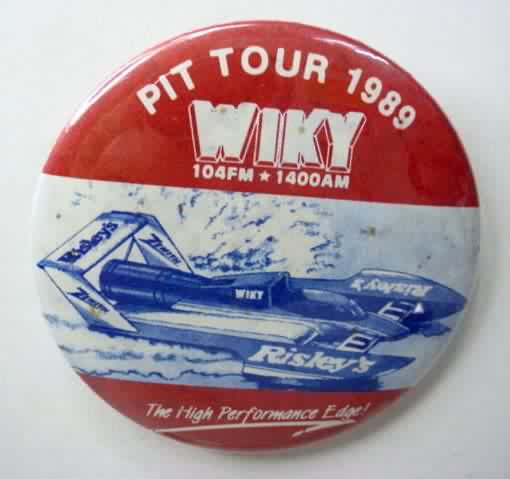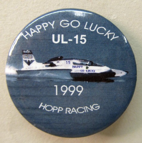 1999 HAPPY GO LUCKY UL-15 HOPP RACING. photo of Limited Hydroplane racing from left to right. white lettering. 2 1/8" diameter. mint. scarce. 15.00