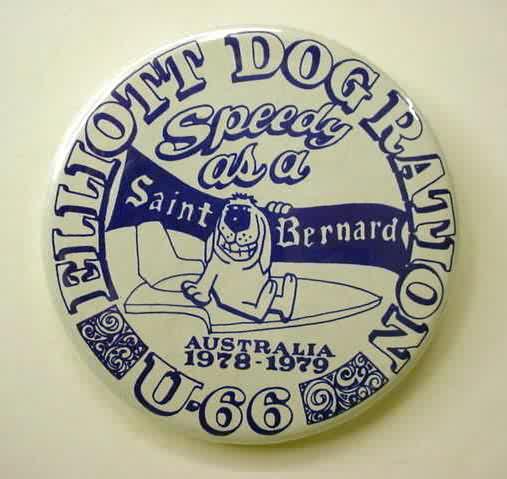 BAD HABIT RACING TEAM. Limited. brown and yellow. black lettering. illustration of boat. 2.25" diameter celluloid pinback button. mint condition. scarce. 15.00