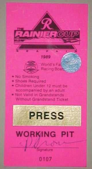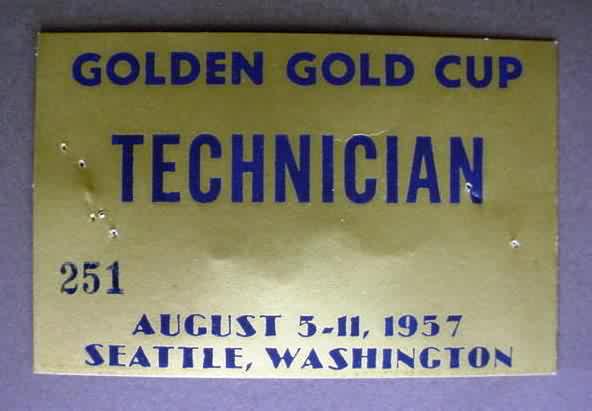 1957 GOLD CUP SEATTLE SEAFAIR Technician Pass. approximately the size of a business card. Pinholes. No creases. 17.00