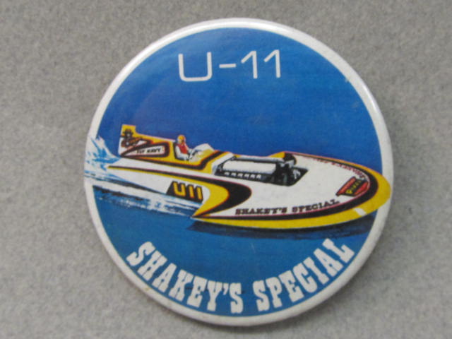 1973 U-11 SHAKEY'S SPECIAL. 2.25" diameter celluloid pinback button. full color graphics of the boat. no flaws. 5.00